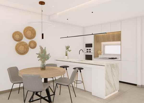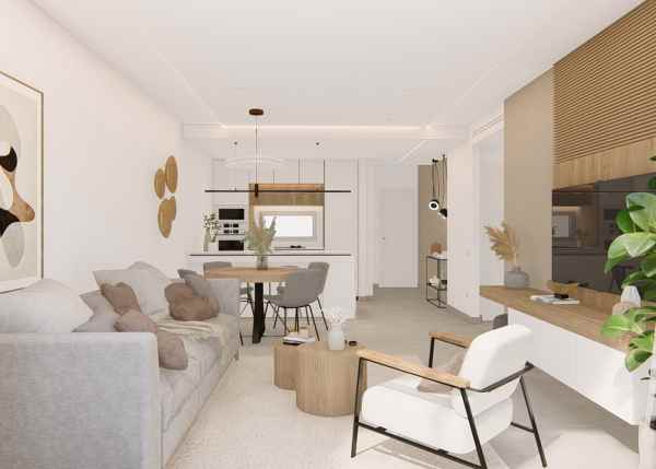 NYBYGGT BOSTADSOMRÅDE I EL RASO, GUARDAMAR DEL SEGURA Nybyggd privat bostadsområde med lägenheter i El Raso, Guardamar del Segura. Komplexet består av 135 bostäder med 2 eller 3 sovrum i block med 3 eller 5 våningar plus solarium, utformade på ett minimalistiskt sätt och med höga kvalitetsstandarder, dess moderna arkitektur harmonierar med våra stora öppna ytor, naturen och simbassängerna och erbjuder en unik och fridfull atmosfär. Vackra bostadskomplex, inklusive en glasad GYM-Spa-avdelning med utsikt över grönområden, simbassänger och från sin terrass med utsikt över saltlagunen La Mata, paddeltennisbana osv. Möbelpaket ingår i priset. Parkeringsplats ingår i priset. Utvecklingen är belägen på en unik och oöverträffad tomt, som gränsar till det naturliga landskapet i saltlagunen, njut av dess biologiska mångfald och unika miljö, i El Raso de Guardamar del Segura, med alla typer av tjänster och bekvämligheter och nära till de bästa stränderna i Medelhavet. Samtidigt kan du tack vare närheten till stranden El Moncayo ta en cykeltur och njuta av Costa Blancas bästa klimat. Dessutom och tack vare de fem nivåerna i vissa av de block som utgör bostadsområdet, alla i söderläge, inkluderar vi i våra lyxiga takvåningar, fullt utrustat kök på solariumet, utomhusdusch (varmt/kallt vatten) och jacuzziområde, för att fullborda den unika upplevelsen av att bo framför en unik och oöverträffad naturmiljö. El Raso är en del av Guardamar del Segura. Guardamar del Segura är en stad som ligger på Costa Blanca södra. Med sin 11 kilometer långa naturstrand och sin stora tallskog. Guardamar del Segura har en stor hamn med aktiviteter under hela året, den har ett stort sportcenter med paddeltennis, tennis, fotboll och en stor uppvärmd pool som fungerar året runt. Här finns också ett bibliotek där det finns gratis wifi och datorer. Guardamar del Segura ligger bara 20 km från flygplatsen Alicante - Elche (El Altet), där det finns många flygningar varje dag med förbindelser till de största europeiska städerna, på grund av efterfrågan på turister på Costa Blanca.