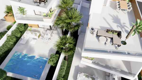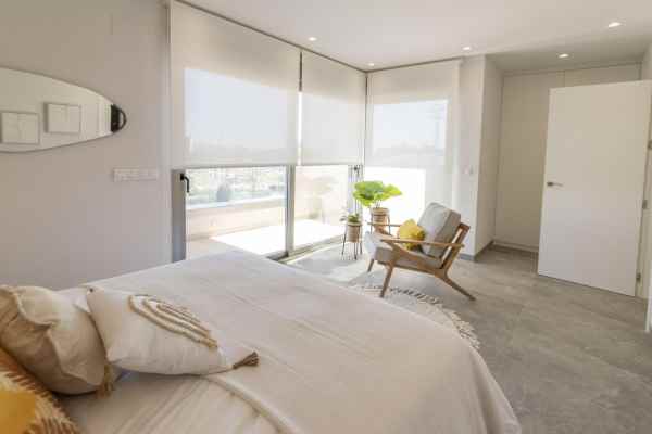 NYBYGGDA VILLOR I PILAR DE LA HORADADA PÅ GOLFBANAN Nybyggt bostadsområde bestående av 6 exklusiva villor med 3 sovrum och 3 badrum som ligger på första raden av Lo Romero golfbana och bara några minuter från närmaste strand. ⠀ Dessutom har varje villa sin egen tomt med privat pool, parkeringsplats och terrass med solarium och sommarkök. Pilar de la Horadada är den sydligaste staden och kommunen på Costa Blanca i provinsen Alicante. Staden ligger på gränsen mellan Comunidad Valenciana och Murcia-regionen. Staden Pilar de la Horadada är en typisk spansk stad som ligger bara 2 km från kusten och de populära stränderna i Torre de la Horadada. I centrum av Pilar de la Horadada hittar du alla bekvämligheter: affärer, konditorier, banker etc. längs huvudgatan "Calle Mayor". Du kommer också att uppleva en underbar atmosfär nära den lokala kyrkan på "Plaza de la Iglesia" där det finns flera kaféer. I Pilar de la Horadada finns också ett välutvecklat cykel- och promenadvägnät, och det finns också ett stort utbud av olika sportaktiviteter. Lo Romero 18-håls golfbana ligger bara en kort bilresa från staden. Flygplatserna i Corvera (Murcia) och Alicante ligger 40 respektive 55 minuter bort. ⠀