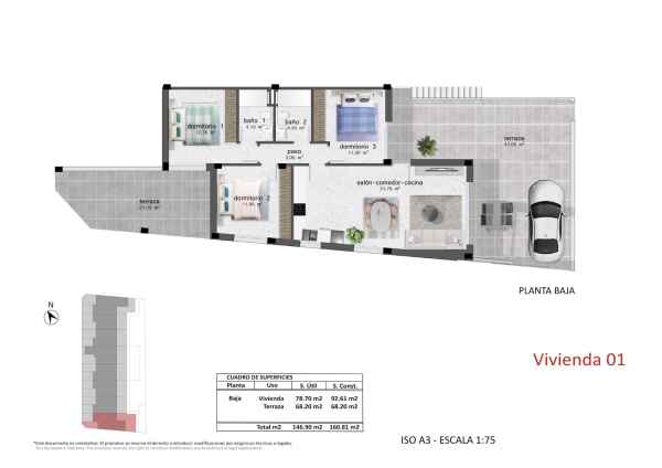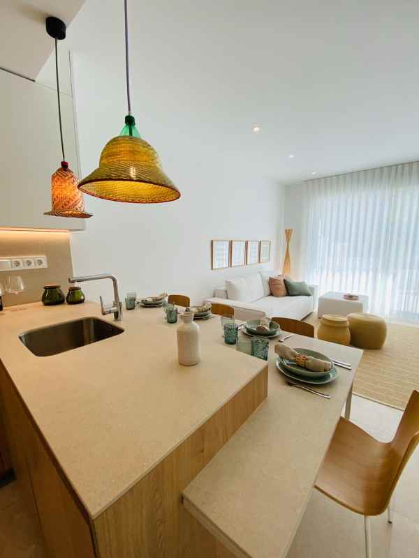 Nybyggt bostadsområde med bungalower i Pilar de la Horadada Exklusiva moderna bungalows i Pilar de la Horadada Detta nya projekt erbjuder 16 eleganta bungalows i den eftertraktade staden Pilar de la Horadada, belägen i den sydligaste delen av Costa Blanca. Välj mellan alternativ med 2 eller 3 sovrum, alla med 2 badrum. Lägenheterna på bottenvåningen har rymliga terrasser på fram- och baksidan med direkt tillgång till den gemensamma poolen och trädgården, medan lägenheterna på översta våningen har en stor privat takterrass. Rymligt boende med moderna funktioner Varje bungalow har ett ljust och öppet vardagsrum med matplats och ett fullt utrustat kök med stora skjutdörrar som sömlöst förbinder inomhus- och utomhusutrymmena. Sovrummen har inbyggda garderober. Luftkonditionering med kanaler är installerad och komplexet har en hiss för enkel åtkomst till de övre våningarna. Privata parkeringsplatser ingår också för alla enheter. Förstklassigt läge i Pilar de la Horadada Pilar de la Horadada är en traditionell spansk stad med en livlig huvudgata som erbjuder stormarknader, butiker, restauranger och barer. De vackra stränderna i Torre de la Horadada och Mil Palmeras ligger bara 5 minuter bort. Området ligger bekvämt 40 km från Corvera flygplats (Murcia) och 55 km från Alicante flygplats, vilket gör det till ett idealiskt läge för både permanent boende och semesterresor.