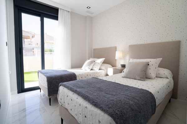 Nybyggda bungalows i Pilar de la Horadada Moderna hem nära stranden Upptäck detta exklusiva nybyggda bostadskomplex i Pilar de la Horadada, som erbjuder bungalows bara 2 km från stranden. Dessa hem är utformade för komfort och stil och är ett utmärkt tillfälle att njuta av livet på Costa Blanca. Rymliga och eleganta hem Detta bostadsområde erbjuder bostäder med 2 eller 3 sovrum, 2 badrum och privat parkering. Välj mellan: Bungalows på bottenvåningen med privat trädgård. Bungalows på översta våningen med privat solarium. Varje fastighet är byggd med högkvalitativa material och moderna ytbehandlingar, inklusive: Förinstallation av kanaliserad luftkonditionering. Aluminium exteriör snickeri, dubbelglas och injicerade aluminiumluckor. Säkerhetsdörr för extra sinnesfrid. Aerotermiskt system för effektiv varmvattenproduktion. Inbyggda garderober i sovrummen. Fullt utrustade badrum med möbler och duschväggar. Exklusiva samhällsfunktioner Detta privata bostadsområde har en vacker gemensam pool och anlagda trädgårdar, vilket skapar en idealisk plats för avkoppling. Beläget strax utanför stadens centrum kan invånarna gå till stormarknader, restauranger, barer, skolor och andra viktiga tjänster. Förstklassigt läge i Pilar de la Horadada Pilar de la Horadada är en charmig spansk stad i den sydligaste delen av Costa Blanca. Det erbjuder en livlig huvudgata med många butiker, stormarknader, restauranger och pittoreska torg. De fantastiska stränderna Torre de la Horadada och Mil Palmeras ligger bara 5 minuter bort, med fin gyllene sand och en naturskön strandpromenad. Staden erbjuder också välutvecklade cykelvägar och vandringsleder, tillsammans med en mängd olika sportaktiviteter. Bekväm tillgång till viktiga destinationer Lo Romero Golf Course - 5 km (10 minuters bilresa). Corvera flygplats (Murcia) - 40 km (40 minuters bilresa). Alicante flygplats - 55 km (55 minuters bilresa). Köpcentrum (La Zenia Boulevard) - 15 km (15 minuters bilresa). Torre de la Horadada Marina - 3 km (5 minuters bilresa). Säkra ditt drömhem idag Missa inte denna fantastiska möjlighet att äga ett helt nytt hem i ett utmärkt läge. Kontakta oss idag för mer information och för att ordna ett besök!