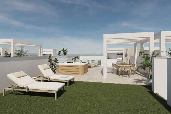 Exklusiva nybyggda bungalows i Pilar de la Horadada - unik stil och privilegierat läge En unik stil som definierar ditt nya hem Detta nybygge av bungalows med 2 och 3 sovrum i Pilar de la Horadada utmärker sig för sin moderna design och böljande struktur, som ger varje hem en unik personlighet. Du kommer att kunna välja mellan: Bottenvåningar med trädgård på framsidan och uteplats på baksidan. Översta våningarna med privat solarium. Bostadskomplexet har en gemensam pool och rymliga gemensamma utrymmen utformade för avkoppling och njutning för hela familjen. Dessutom erbjuder projektet ett utomhusgym, en gemensam jacuzzi och en cykelparkering samt en parkeringsplats som tilldelas varje fastighet med möjlighet att ladda elfordon, utformad för att erbjuda dig maximal komfort och livskvalitet. Ljusa och högkvalitativa interiörer Varje hem har utformats för att erbjuda en upplevelse av komfort och funktionalitet. Öppna planlösningar maximerar känslan av rymd och ljus, medan neutrala toner och träfinish skapar en elegant och välkomnande atmosfär. Rymliga och ljusa sovrum, där det stora sovrummet har tillgång till en privat terrass. Kök med öppet koncept, integrerat i vardagsrummet för bekvämlighetens skull. Moderna badrum med material av högsta kvalitet. Pilar de la Horadada - Livskvalitet på Costa Blanca Pilar de la Horadada ligger i provinsen Alicante och är en kuststad som kombinerar tradition med en avslappnad atmosfär. Den är känd för sina vackra stränder, till exempel Playa de las Higuericas, med gyllene sand och kristallklart medelhavsvatten. Förutom kusten har staden en livlig huvudgata som kantas av butiker, stormarknader, restauranger och pittoreska torg. Den utmärkta infrastrukturen omfattar cykelvägar, vandringsleder och ett brett utbud av sportaktiviteter. Närhet till viktiga platser av intresse Detta bostadsområde erbjuder bekväm tillgång till de viktigaste destinationerna i området: Torre de la Horadada Beach - 3 km (5 min bilfärd). Lo Romero Golf Course - 5 km (10 min bilfärd). La Zenia Boulevard Shopping Centre - 15 km (15 min bilfärd). Corvera Flygplats (Murcia) - 40 km (40 min bilfärd). Alicante flygplats - 55 km (55 min bilfärd). Säkra din Costa Blanca-fastighet idag Missa inte möjligheten att köpa en helt ny fastighet på ett exceptionellt läge. Kontakta oss idag för mer information och för att ordna en visning.