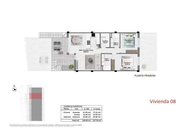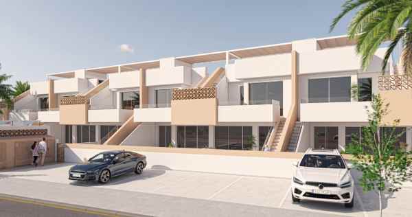Nybyggda bungalows i Pilar de la Horadada nära stranden och stadens centrum Modernt boende i hjärtat av Costa Blanca Välkommen till ett boutique bostadsområde med 12 nybyggda bungalows i Pilar de la Horadada, en livlig kuststad vid Costa Blancas södra spets. Detta utmärkta läge erbjuder den perfekta blandningen av lugnt medelhavsliv och bekvämlighet, med alla viktiga tjänster, butiker, restauranger och bekvämligheter inom gångavstånd. De vackra sandstränderna Torre de la Horadada och Mil Palmeras ligger bara 3 km bort, perfekt för avslappnade stranddagar eller vattensporter. Val av bungalows på bottenvåningen eller översta våningen Detta exklusiva bostadsområde erbjuder två typer av moderna bostäder som passar din livsstil: Bungalows på bottenvåningen med 3 sovrum, 2 badrum och stora privata terrasser på framsidan och baksidan med direkt tillgång till den gemensamma poolen och trädgårdarna. Bungalows på översta våningen med 2 sovrum, 2 badrum och ett expansivt privat takterrass, komplett med ett sommarkök, pergola och gästtoalett. Alla bostäder har ljusa vardagsrum med öppen planlösning, fullt utrustade kök, luftkonditionering med kanaler och privat parkering. Sovrummen har inbyggda garderober och badrummen har golvvärme för extra komfort. Premiumfunktioner för ett modernt medelhavsliv Bostäderna är utformade med högkvalitativa ytbehandlingar och praktiska funktioner, inklusive: Pansarförsedd ytterdörr med aluminiumfinish Elektriska fönsterluckor i vardagsrummet och sovrummen Aerotermiskt varmvattensystem Köksutrustning från BALAY eller motsvarande Takterrasser med konstgräs, utomhusdusch, belysning och fullt utrustat sommarkök med diskmaskin, litet kylskåp, induktionshäll och fläkt. Strategiskt läge med utmärkta kommunikationer Pilar de la Horadada är väl ansluten till viktiga sevärdheter längs Costa Blanca och Costa Cálida: Stränder (Torre de la Horadada / Mil Palmeras) - 3 km Lo Romero golfbana - 6 km Corvera flygplats (Murcia) - 40 km Alicante flygplats - 55 km Köpcentret Zenia Boulevard - 14 km Marina i San Pedro del Pinatar - 11 km Ditt idealiska hem i solen Oavsett om du letar efter en semesterflykt, en året runt bostad eller en hyresinvestering, erbjuder dessa bungalows i Pilar de la Horadada utmärkt värde och kvalitet i en av Costa Blancas mest önskvärda städer. Kontakta oss idag för att ordna en visning eller begära mer information!