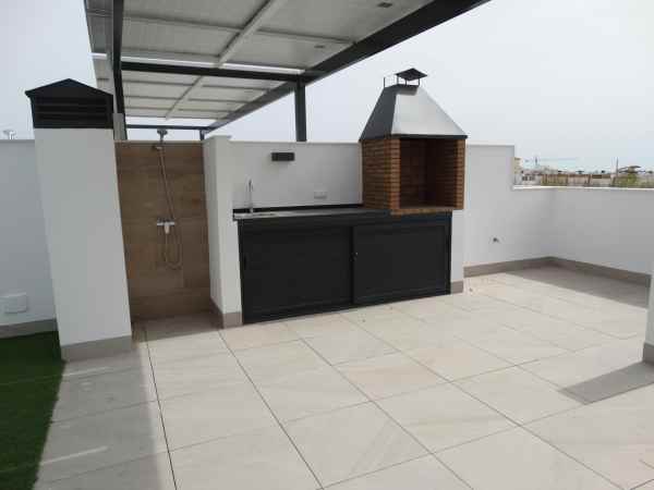 Nybyggda bungalower med solterrass eller trädgård i Pilar de la Horadada Modernt bostadsområde på Costa Blanca Sur Beläget i den charmiga kommunen Pilar de la Horadada erbjuder detta nya bungalowområde en bekväm och medelhavsinspirerad livsstil i ett av de mest attraktiva områdena på Costa Blanca. Pilar de la Horadada är känt för sin mysiga atmosfär, sitt utmärkta klimat och sina långa sandstränder som Las Higuericas och Mil Palmeras, perfekta för att njuta av med familjen eller för att utöva vattensporter. Planlösning och bostadstyper Komplexet består av 28 moderna bungalows med 2 eller 3 sovrum, fördelade på: Bottenvåningar med privat trädgård Övre våningar med privat solarium och tillhörande förråd Många av bostäderna har söderläge, vilket garanterar ett utmärkt ljusinsläpp, och erbjuder utsikt över den gemensamma poolen eller den angränsande parken. Funktionella och välutrustade utrymmen Varje bostad har utformats med rymliga och funktionella utrymmen: Öppen kök med stort vardagsrum Inbyggda garderober Privat terrass i varje enhet Parkeringsplats ingår Dessutom har bostäderna: Varmvatten via aerotermiskt system Förinstallation för luftkonditionering Ytterfönster i PVC med dubbla glas och aluminium persienner Badrumsmöbler ingår Gemensamma utrymmen och naturskön omgivning Bostadsområdet har en gemensam pool omgiven av grönområden, perfekt för att njuta av solen och lugnet. Bara 4 km från Playa de las Higuericas, som du enkelt når till fots eller med cykel via den trevliga strandpromenaden som leder till havet. Utmärkt läge och kommunikationer Bostadsområdets läge ger tillgång till alla typer av tjänster och sevärdheter: Supermarknader, butiker, barer och restauranger mindre än 1 km bort Golfbanor som Lo Romero 6 km bort Dos Mares shoppingcenter 11 km bort Stränderna Mil Palmeras och Torre de la Horadada bara 5 minuter bort Murcia flygplats (Corvera) 40 km bort Alicante flygplats 65 km Ditt nya liv i solen Detta bostadsområde i Pilar de la Horadada är ett utmärkt tillfälle att njuta av det medelhavslika livet i ett modernt och välbeläget hus. Kontakta oss idag för mer information eller för att boka en visning och ta steget mot ditt nya hem på Costa Blanca.