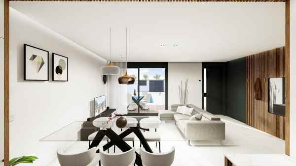 Hållbara nybyggda radhus i Pilar de la Horadada, Costa Blanca Moderna bostäder med teknik och energieffektivitet Upptäck detta exklusiva nybyggnadsprojekt i Pilar de la Horadada, ett av de mest attraktiva områdena på södra Costa Blanca. Detta radhusprojekt kombinerar modern design, hållbarhet och teknik för att erbjuda en bekväm, effektiv och uppkopplad livsstil. Bostadsområdet består av 8 radhus med 3 sovrum och 3 badrum, alla med privat pool, solarium med sommarkök och parkering på tomten. Dessutom är en av bostäderna helt möblerad och inflyttningsklar, med 2 sovrum och 2 badrum. Eleganta och funktionella interiörer Varje bostad har designats med omsorg om detaljerna: Fullt utrustat kök med vitvaror från Siemens eller liknande Badrum med handfat på bänkskiva, blandare och säkerhetsglas Förinstallation för luftkonditionering Luftvärmesystem för varmvatten LED-belysning inomhus och utomhus, inklusive dekorativa lister i kök, vardagsrum och badrum Bostäderna har även ett hemmastyrningssystem för styrning av persienner, utomhusbelysning, luftkonditionering och pool, samt solcellsanläggning med 6 solpaneler för egen förbrukning. Privat utomhusområde och solarium med sommarkök Njut av ett stort utomhusområde med: Privat pool med dusch och LED-strålkastare Trädgård med integrerade strålkastare Solarium med utekök i aluminium, bänkskiva och diskho Allt är tänkt för att du ska kunna njuta av det medelhavsklimatet året om. Pilar de la Horadada: Livskvalitet bara några minuter från havet Denna kommun erbjuder en utmärkt infrastruktur, ett livligt lokalliv och blåflaggade stränder bara 2 km bort. Dessutom finns cykelbanor, vandringsleder och många sportaktiviteter. Viktiga avstånd: Stranden Torre de la Horadada: 2 km Golfbanan Lo Romero: 5 km Marina Torre de la Horadada: 3 km Zenia Boulevard shoppingcenter: 15 km Murcia flygplats (Corvera): 40 km Alicante flygplats: 55 km Begär information och boka ett besök Detta är din chans att köpa en energieffektiv, modern bostad nära havet i ett av de mest eftertraktade områdena på Costa Blanca. Kontakta oss idag för mer information eller för att boka ett personligt besök.