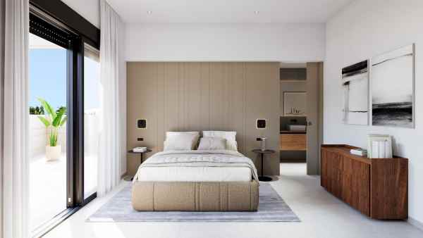 Boutique-projekt med nybyggda hus med privata pooler i Pilar de la Horadada Exklusivt bostadsområde i ett utmärkt läge på Costa Blanca Upptäck detta boutique-projekt med endast 10 exklusiva nybyggda hus i Pilar de la Horadada, en charmig kuststad i södra Costa Blanca. Detta moderna projekt ligger i utkanten av staden och erbjuder öppen utsikt över gröna parkområden, samtidigt som det ligger bara 2 km från Medelhavsstränderna i Torre de la Horadada. Njut av bekvämligheten med alla nödvändiga tjänster inom gångavstånd, inklusive stormarknader, restauranger, banker, skolor och hälsovård. Val av planlösningar med privata utomhusutrymmen Detta nya projekt erbjuder en mängd olika planlösningar med 2 och 3 sovrum för att passa olika behov och livsstilar: Hus på bottenvåningen har en privat trädgård, pool med strandliknande område och fullt anlagda utomhusområden med automatisk bevattning. Hus på övervåningen har ett privat solarium med sommarkök, pergola, utedass och privat pool med inbyggd jacuzzi, plus ett särskilt cykelförråd på bottenvåningen. Parhusvillor erbjuder generöst utrymme både inomhus och utomhus med privat trädgård och pool, perfekt för familjeliv eller längre vistelser. Alla bostäder har en privat parkeringsplats. Premiumfunktioner och högkvalitativa ytbehandlingar Alla bostäder är designade med komfort, effektivitet och stil i åtanke och är utrustade med: Fullt installerad luftkonditionering Elektriska fönsterluckor och förstärkta ytterdörrar LED-belysningspaket för inomhus- och utomhusområden Inredda kök med vitvaror från BOSCH eller SIEMENS Eleganta badrum med golvvärme, speglar, tvättställ och duschväggar Modern design som maximerar naturligt ljus och funktionalitet Dessa genomtänkta bostäder erbjuder en sömlös blandning av inomhuskomfort och utomhusliv, perfekt för att njuta av det varma medelhavsklimatet året runt. Viktiga avstånd: Stränder: 2 km Lo Romero golfbana: 6 km Dos Mares shoppingcenter (San Javier): 10 km Zenia Boulevard shoppingcenter (Orihuela Costa): 12 km Murcias internationella flygplats: 40 km Alicantes flygplats: 70 km Perfekt för boende eller investering Med begränsat antal enheter och ett privilegierat läge är detta nya bostadsområde i Pilar de la Horadada en fantastisk möjlighet för både permanent boende och investering. Oavsett om du söker ett fritidshus, ett pensionärsboende eller en hyresfastighet erbjuder dessa moderna bostäder allt du behöver. Kontakta oss idag för att säkra din nya bostad på Costa Blanca.