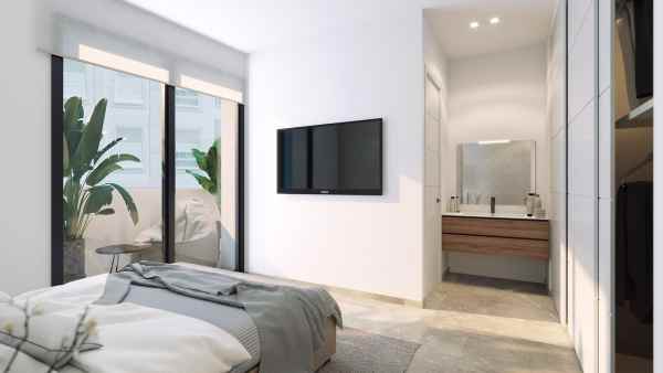 Moderna lägenheter bara 250 meter från Playa del Cura i Torrevieja Exklusivt nybyggnadsprojekt i hjärtat av Torrevieja Detta exklusiva bostadsprojekt med 12 moderna lägenheter ligger bara 250 meter från Playa del Cura, en av de mest populära stränderna i Torrevieja. Byggnaden är designad med en perfekt balans mellan elegans, funktionalitet och medelhavslivsstil och erbjuder en mängd olika planlösningar med 1 eller 2 sovrum, inklusive lägenheter med terrasser och takvåningar med privata solarium. Det centrala läget ger enkel tillgång till butiker, restauranger, fritidsområden och alla nödvändiga tjänster, samtidigt som det bibehåller en känsla av komfort och lugn. Förstklassiga bekvämligheter för en modern livsstil Anläggningen omfattar 130 m² gemensamma utrymmen utformade för avkoppling och underhållning. Boende kan njuta av: Pool på bottenvåningen med barnområde Gym och bastu Solarium på taket med chill-out-områden och frodig vegetation Alla lägenheter är byggda med högkvalitativa material och ytbehandlingar, vilket garanterar både komfort och hållbarhet. Funktioner inkluderar: Fullt möblerade badrum med duschväggar Förinstallation av luftkonditionering Högkvalitativ PVC-snickerier med solskyddsglas Förstärkt säkerhetsdörr Det livliga livet i Torrevieja Torrevieja är en livlig kuststad på Costa Blanca, känd för sina kulturella och rekreationsaktiviteter året runt. Med över 300 soldagar per år och ett milt medelhavsklimat är området idealiskt för strandälskare, friluftsentusiaster och de som söker en livlig livsstil. Staden erbjuder också ett brett utbud av tjänster, internationell mat, marinor och en livlig strandpromenad. Utmärkt läge med bra förbindelser Bostadsområdet är strategiskt beläget med enkel tillgång till viktiga sevärdheter: Alicante flygplats: 45 km Golfbanor: 7–10 km Zenia Boulevard Shopping Center: 8 km Torrevieja Marina och hamn: 2 km Ditt perfekta hem vid havet Oavsett om du letar efter en permanent bostad, ett fritidshus eller en fastighet med uthyrningspotential, erbjuder dessa moderna lägenheter i Torrevieja en utmärkt möjlighet att investera i Costa Blancas livsstil. Kontakta oss idag för att boka en visning och säkra din moderna lägenhet bara några steg från Playa del Cura.