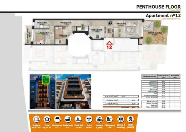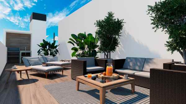 Moderna lägenheter bara 250 meter från Playa del Cura i Torrevieja Exklusivt nybyggnadsprojekt i hjärtat av Torrevieja Detta exklusiva bostadsprojekt med 12 moderna lägenheter ligger bara 250 meter från Playa del Cura, en av de mest populära stränderna i Torrevieja. Byggnaden är designad med en perfekt balans mellan elegans, funktionalitet och medelhavslivsstil och erbjuder en mängd olika planlösningar med 1 eller 2 sovrum, inklusive lägenheter med terrasser och takvåningar med privata solarium. Det centrala läget ger enkel tillgång till butiker, restauranger, fritidsområden och alla nödvändiga tjänster, samtidigt som det bibehåller en känsla av komfort och lugn. Förstklassiga bekvämligheter för en modern livsstil Anläggningen omfattar 130 m² gemensamma utrymmen utformade för avkoppling och underhållning. Boende kan njuta av: Pool på bottenvåningen med barnområde Gym och bastu Solarium på taket med chill-out-områden och frodig vegetation Alla lägenheter är byggda med högkvalitativa material och ytbehandlingar, vilket garanterar både komfort och hållbarhet. Funktioner inkluderar: Fullt möblerade badrum med duschväggar Förinstallation av luftkonditionering Högkvalitativ PVC-snickerier med solskyddsglas Förstärkt säkerhetsdörr Det livliga livet i Torrevieja Torrevieja är en livlig kuststad på Costa Blanca, känd för sina kulturella och rekreationsaktiviteter året runt. Med över 300 soldagar per år och ett milt medelhavsklimat är området idealiskt för strandälskare, friluftsentusiaster och de som söker en livlig livsstil. Staden erbjuder också ett brett utbud av tjänster, internationell mat, marinor och en livlig strandpromenad. Utmärkt läge med bra förbindelser Bostadsområdet är strategiskt beläget med enkel tillgång till viktiga sevärdheter: Alicante flygplats: 45 km Golfbanor: 7–10 km Zenia Boulevard Shopping Center: 8 km Torrevieja Marina och hamn: 2 km Ditt perfekta hem vid havet Oavsett om du letar efter en permanent bostad, ett fritidshus eller en fastighet med uthyrningspotential, erbjuder dessa moderna lägenheter i Torrevieja en utmärkt möjlighet att investera i Costa Blancas livsstil. Kontakta oss idag för att boka en visning och säkra din moderna lägenhet bara några steg från Playa del Cura.