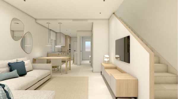 NYBYGGD VILLA I TORRE DE LA HORADADA Nybyggd villa i bostadsområde med gemensam pool i Torre de la Horadada som ligger 800 meter från stranden. Villa har 4 sovrum, 3 badrum, kök med öppen planlösning med vardagsrumsdelen, inbyggda garderober, terrass, privat solarium, trädgård och parkeringsplats. Torre de la Horadada ligger söder om Alicante i ett vackert läge vid kusten. De vackra stränderna i Torre de la Horadada och Mil Palmeras har fin sand vacker strandpromenad. Det finns massor av restauranger, barer och butiker, även vattensporter, dykning och snorkling. Det är bra förbindelser bara 40 minuter från Alicante och Murcias Corvera flygplatser, med stora kommersiella köpcentra och flera golfbanor inom räckhåll.