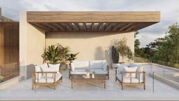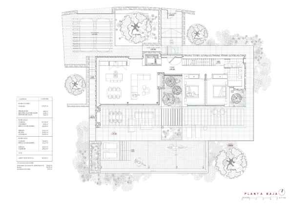 Modern villa med panoramautsikt över havet i La Fustera, Benissa Costa Denna exklusiva nybyggda villa, ritad av en känd arkitekt och byggd av en lokal byggentreprenör med mer än 20 års erfarenhet, ligger på en 800 m² stor tomt bara några steg från La Fustera-stranden. Arkitekturen blandar medelhavsvärme med modern elegans och kombinerar natursten, trä och mjuka neutrala toner som smälter in perfekt i kustlandskapet. Med en total byggnadsyta på 716 m² fördelat på tre våningar – källare, bottenvåning och första våningen – erbjuder villan en perfekt balans mellan funktionalitet, design och komfort. Källarplan Den nedre våningen på 105,97 m² är utformad för både praktiska ändamål och fritid. Den innehåller ett fullt utrustat gym, tvättstuga och tekniska utrymmen, med möjlighet att anpassa ytterligare utrymmen som vinkällare, biograf eller multifunktionsrum. På denna våning finns också poolens filtreringssystem och vattentankar, vilket säkerställer en effektiv hantering av alla tekniska installationer. Bottenvåningen Huvudvåningen, med 137,93 m², har en ljus öppen planlösning som fångar essensen av medelhavslivet. Det rymliga vardagsrummet, matplatsen och köket öppnar sig genom stora fönster från golv till tak mot huvudterrassen och infinitypoolen, med en fantastisk panoramautsikt över havet som präglar karaktären hos detta hem. Två dubbelrum, ett komplett badrum och en gästtoalett kompletterar denna våning och erbjuder komfort och funktionalitet. Utomhus skuggar en träpergola utomhusloungen och matplatsen, omgiven av lummiga trädgårdar, solterrasser och en 59,40 m² stor infinitypool som visuellt smälter samman med havet. Första våningen Den övre våningen, med 70,19 m², är reserverad för mastersviten – en privat oas med klädkammare, eget badrum och en stor privat terrass med fantastisk utsikt över Medelhavet. Ett andra sovrum eller kontor kompletterar denna våning, som också ger tillgång till ett 25,02 m² stort solarium, perfekt för att koppla av i solen och njuta av den lugna omgivningen. Exteriör och läge Denna fastighet ligger på en lugn bostadsgata omgiven av moderna villor och har ett exceptionellt läge bara 3 minuters promenad från La Fustera-stranden (150 m), Mandala Beach Bar & Restaurant och viktiga bekvämligheter som stormarknader och lokala tjänster. Denna villa är designad med tonvikt på ljus, utrymme och ett sömlöst boende inomhus och utomhus, och förkroppsligar den moderna medelhavslivsstilen – elegant, avslappnad och i perfekt harmoni med sin spektakulära panoramautsikt över havet. Säkra din drömvilla i La Fustera, Benissa Costa, och omfamna den ultimata medelhavslivsstilen med hisnande havsutsikt och oöverträffad komfort.