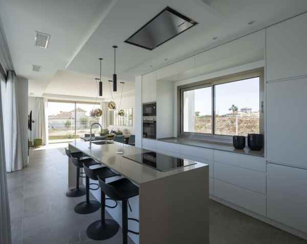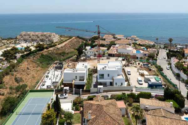 Exklusiva nya villor till salu i Las Farolas, Mijas Costa Utmärkt läge vid havet på Costa del Sol Upptäck detta nya projekt med 7 lyxvillor beläget i den prestigefyllda och väletablerade urbanisationen Las Farolas, mellan Fuengirola och La Cala de Mijas. Dessa exceptionella bostäder ligger bara 100 meter från stranden och har delvis utsikt över havet och bergen samt enkel tillgång direkt från kustvägen N-340 (A7). Området är känt för sin lugn, närhet till Medelhavet och utmärkta förbindelser till Málaga, Marbella och flygplatsen. Elegant design och överlägsen byggkvalitet Detta projekt, som byggts av en byggherre med lång erfarenhet på Costa del Sol, speglar de högsta standarderna för kvalitet, säkerhet och modern design. Varje villa kombinerar medelhavscharm med modern arkitektur för att erbjuda ett ljust, funktionellt och elegant boende. Rymlig planlösning på tre våningar Varje villa har tre våningar med generösa utrymmen både inomhus och utomhus: Källare: garage för två bilar, teknikrum och tvättstuga. Bottenvåning: rymligt vardagsrum med kök, ett sovrum eller kontor och ett badrum. Vardagsrummet vetter mot en stor terrass med privat pool och trädgård. Övre våningen: ytterligare sovrum, inklusive mastersvit med separat badkar och tillgång till privata terrasser, några med havsutsikt. Lyxiga ytbehandlingar och modern komfort Varje villa är utrustad med premiummaterial och den senaste tekniken, inklusive: Fullt utrustade köksapparater från Bosch Motoriserade fönsterluckor i alla sovrum Golvvärme via aerotermiskt system och luftkonditionering via kanaler. Smart hemautomatisering för att styra persienner, belysning och klimat Anlagda trädgårdar med automatiskt bevattningssystem Avstånd till viktiga sevärdheter: Strand: 100 m La Cala de Mijas: 3 km Fuengirola centrum: 6 km Marbella: 22 km Málaga internationella flygplats: 30 km Närmaste golfbana (Chaparral Golf): 2 km Málagas centrum: 40 km En livsstil präglad av komfort och prestige Dessa villor i Las Farolas erbjuder en oöverträffad kombination av avskildhet, lyx och närhet till havet, vilket gör dem idealiska som permanentbostad, semesterbostad eller investering på Costa del Sol. Kontakta oss idag för att boka en visning och upptäck din drömvilla i Mijas Costa.
