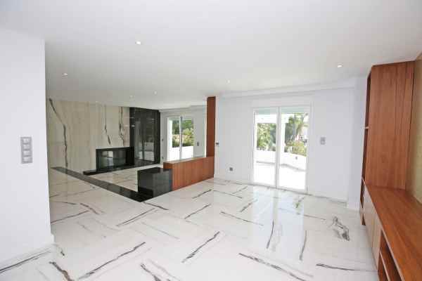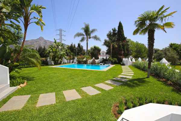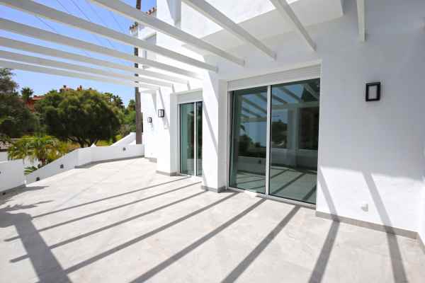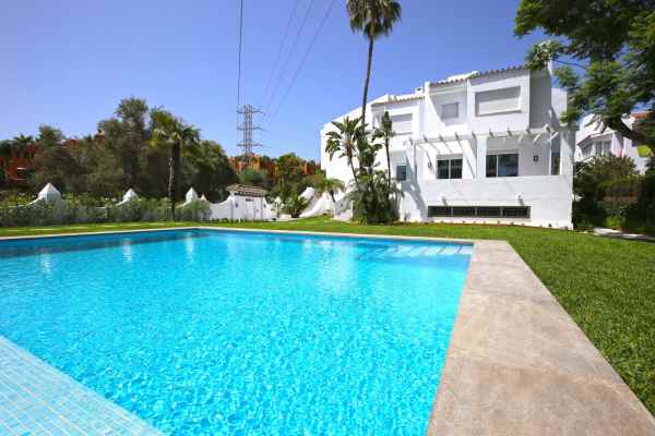 Magnificent fully reformed five bedroom, south east facing townhouse in a fantastic location of Nueva Andalucia; just a short walk from Puerto Banus, the beach, bars, restaurants and local amenities. The property consists on the entrance level of an open plan living and dining area with a built in fireplace and patio doors leading to the private terrace, large garden and swimming pool; fully fitted kitchen; and a guest toilet. The first floor has the master suite; guest suite; two guest bedrooms; and a guest bathroom. The lower level of the property has access to the private garage with parking for three cars; a guest suite with the possibility of being a guest apartment with space for a kitchenette and lounge area; storage room; and a laundry room. Other features include an elevator to all levels, hot and cold air conditioning, electric shutters, fitted wardrobes and private driveway for three or more cars.