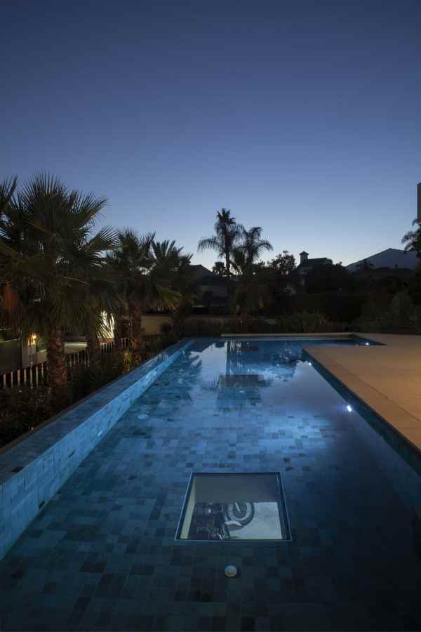 Fantastic contemporary villa with mountain views in Parcelas del Golf, a private and secure residential area in the Golf Valley of Nueva Andalucía. Distributed on three levels, this luxury villa offers spacious interior spaces bathed in natural light extended by huge terraces leading to a large swimming pool and superb Mediterranean gardens, an ultramodern kitchen fully equipped with high-end Balay appliances, 7 bedrooms, 6 bathrooms, one of the bedrooms with two windows overlooking the lower level with a view of the cars. Lift to all levels, 200-m2 solarium, BBQ area, Jacuzzi, rare stone construction from Portugal and outdoor parking for 5 cars. A sublime property in an exceptional setting only 5 minutes' drive to Puerto Banús, the beach and all amenities.