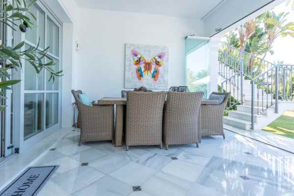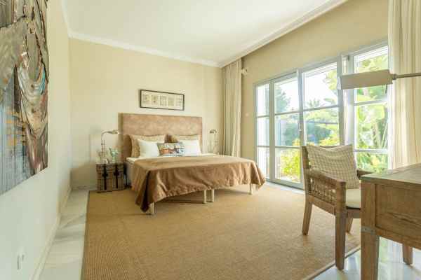 This one level villa is located in the heart of Sierra Blanca, Marbella – one of the most prestigious areas in southern Spain. With its 4 bedrooms and 4 bathrooms it can accommodate up to 8 guests who get spoiled by a perfectly maintained garden who lovingly embraces the pool in front of the house, as well as a particular charming interior design that combines harmoniously the Scandinavian soul of the owner with international art pieces.