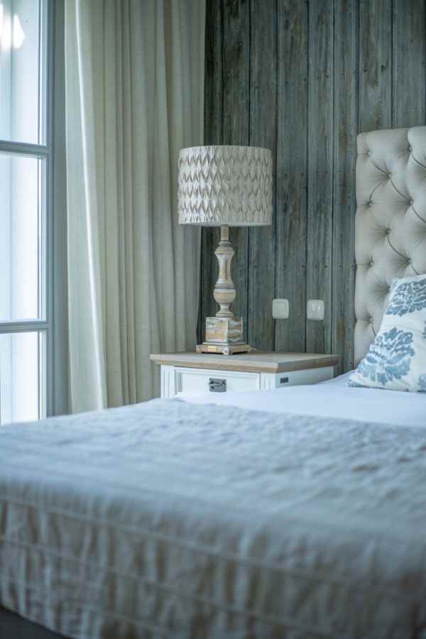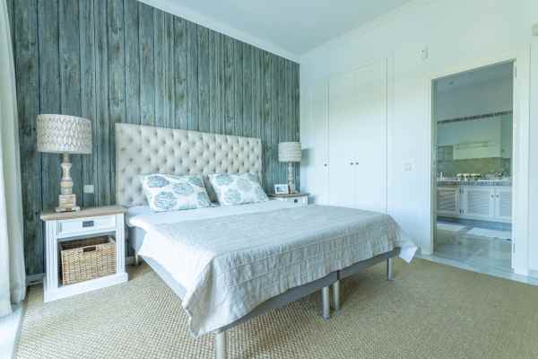 The west wing of the house has 1 master bedroom with direct access to the garden and an en suite bathroom with bathtub and shower. Two further bedrooms and a bathroom with shower complete the space of the villa. On the north side you will find another alfresco dining area, ideal for barbecues. A very special highlight – the sail-protected sun terrace with sea view can be reached via an external staircase. Ideal to read a book in peace, enjoy the sea view or pursue your own thoughts.