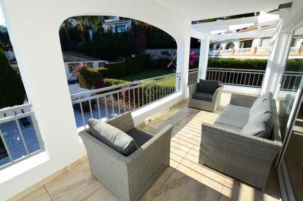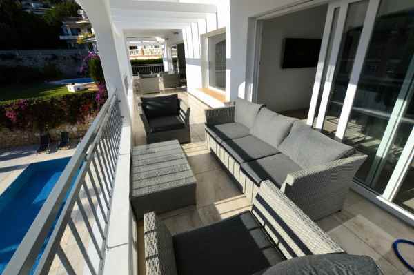 This stunning villa features 6 spacious bedrooms and 5 modern bathrooms, with terraces offering panoramic sea views. Outside, enjoy a beautiful swimming pool, garden, and a large patio area complete with seating perfect for relaxing or hosting barbecues.