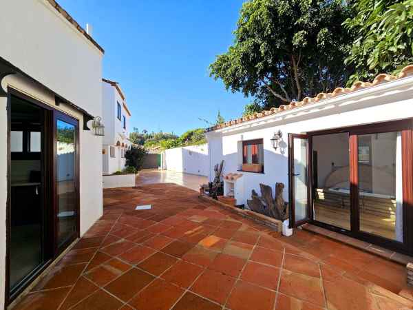 The main house has 5 bedrooms, 3 large refurbished bathrooms, 2 sitting rooms with 2 fireplaces, a large open plan kitchen, dining area, all spread over two floors. There is a further guest apartment with separate entrance that would be ideal for staff, teenagers or guests. The 851m² plot is completely flat making the garden area 100% useable. The garden houses an extremely large swimming pool and lawn area, which is perfect for a family with children or pets. The villa is accessed via automatic gates, with a secondary door at the bottom of the garden for closer access to the beach. This property has maintained its Andalucian charm with beautiful wooden beams, vaulted ceilings, and traditional tilework.