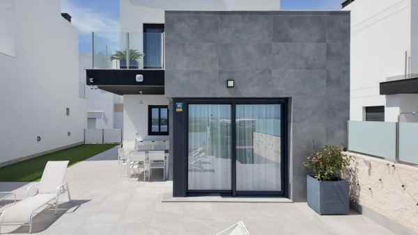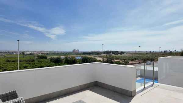 Take a look at this Fabulous New Build Resale Detached Villa located in Los Balcones. The property offers 3 spacious bedrooms with wardrobes, 3 bathrooms, living/dining area and a fully fitted kitchen. On the ground floor you will find a bedroom with ensuite bathroom and walk-in closet and on the upper floor a further 2 bedrooms and bathroom. The property benefits from terraced areas, roof solarium with views of the salt lakes, underfloor heating, solar panels and a 70 m² basement with a garage and plenty of storage for bicycles or sports equipment. The property also benefits from a private swimming pool, outside shower, air conditioning and much much more.