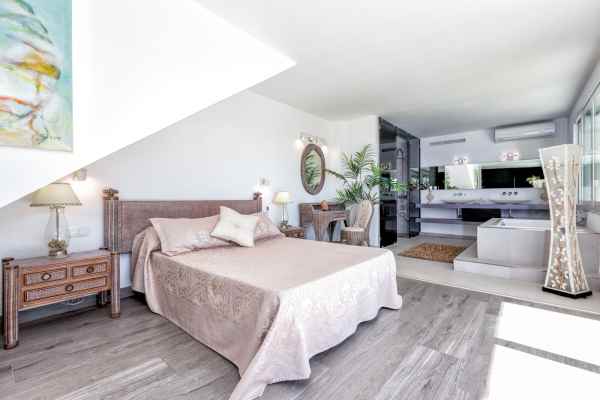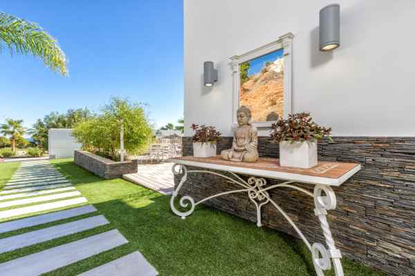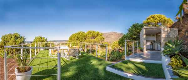 The villa’s outdoor areas are without doubt one of its most exceptional highlights, thoughtfully designed to make the most of the Mediterranean climate and natural surroundings. Expansive, lush gardens surround the home, offering a peaceful atmosphere and a strong connection to nature. A private swimming pool, invites moments of relaxation, while a dedicated barbecue area and serene chill-out spaces provide the perfect setting for outdoor entertaining or simply enjoying the surroundings.