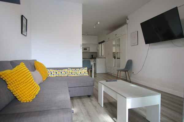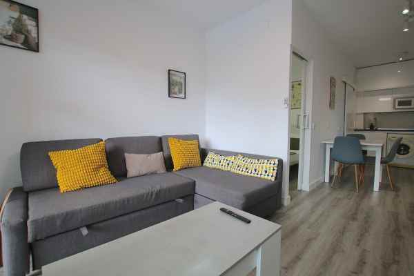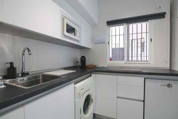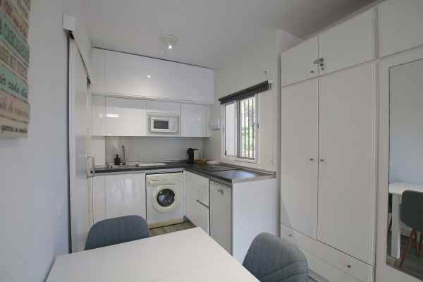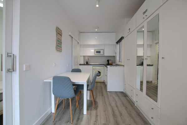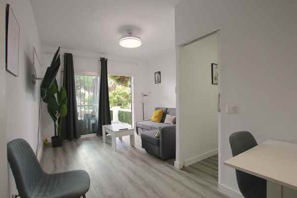LOCATION! A ground floor studio apartment with a separate sleeping area and a large terrace. The bright and airy apartment is completely renovated with an open-plan kitchen and a shower room.
