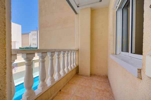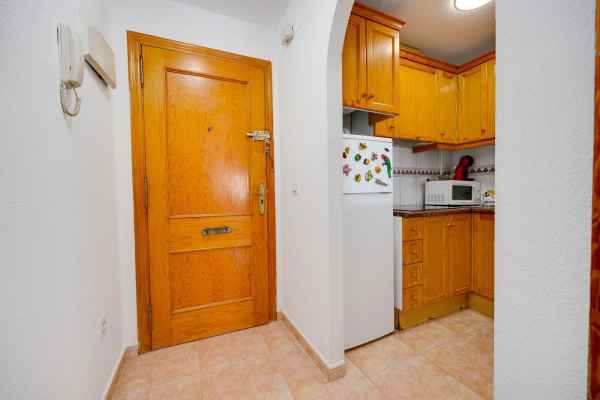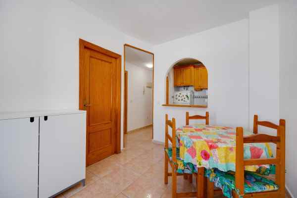 Apartment on Calle San Lorenzo 2, in the center of Torrevieja. To access this cozy home, enter through the entrance called Nabila XVI until you reach the first floor. Upon entering, on the left is the kitchen, and opposite, the living and dining rooms. There is a bedroom with a built-in wardrobe and a bathroom. It also has a terrace overlooking the communal pool, perfect for enjoying the good weather and Mediterranean climate. All spaces are in good condition, and the apartment is ready to become the home you've been looking for. All kinds of services are just a few minutes' walk away, one of the luxuries of being located in the heart of the city: supermarkets, a pharmacy just around the corner, stationery stores, shops, a post office, and much more. Torrevieja's seafront is 900 meters from the apartment, where you'll find the port and various coves and beaches, such as Las Piscinas or Playa del Cura a little further away. Don't hesitate to contact us for more information!