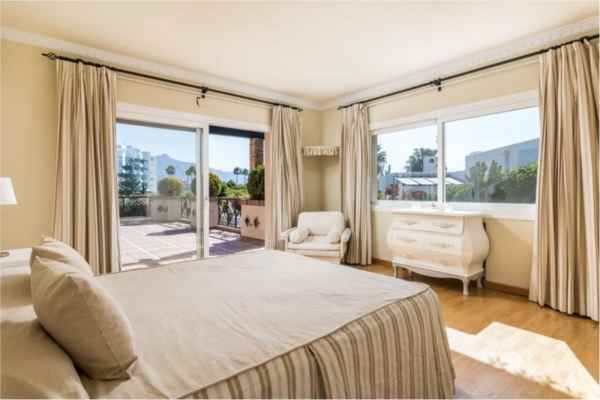 The master suite is located on the upper floor and has doors opening on to a terrace. The formal drawing room has double aspect views, a working fire place and sliding doors on to a large covered terrace. From the drawing room an arch leads to the formal dining room which easily seats 8 persons and further in to a good size fully fitted kitchen which also have access from the hall. The ground floor offers two double bedroom suites, an additional kitchen facilitating the BBQ area and a second reception which currently is used as a snooker room. Again doors open to a sunny covered terrace.