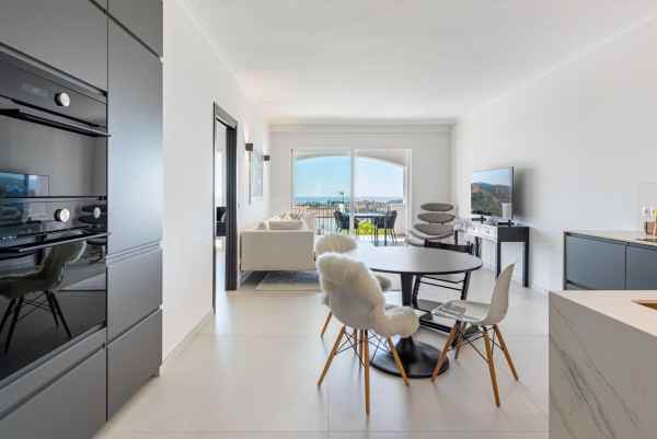 This 144 sqm residence has been exquisitely renovated with an emphasis on clean lines, refined design, and top-tier finishes. Offering three spacious bedrooms, two sophisticated bathrooms, and a stunning terrace with breathtaking views of the sea and surrounding mountains. Perfect for enjoyable gatherings on the terrace all year round. This home embodies modern luxury.