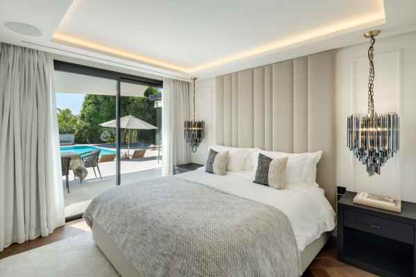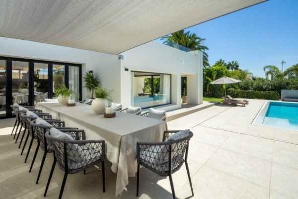 Striking elegant modern villa for sale in the heart of Nueva Andalucía, one of the most prestigious and sought-after residential areas on the Costa del Sol. The property blends contemporary Mediterranean style with high functionality and superior build quality. Positioned to enjoy serene sea views and a custom-designed pool, the villa offers a lifestyle of privacy, comfort, and sophistication in a location prized for both tranquility and convenience.