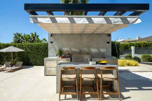 The villa’s exterior spaces are designed to support both relaxation and entertaining. The landscaped tropical garden offers multiple terraces, a barbecue area, a boules pitch, and a discreetly placed speaker system for music oriented towards the house. The innovative saltwater pool is operated by a smart KNX system for optimal water temperature and quality. Additional features include private parking for several vehicles, a well-appointed laundry room, and ample storage areas. The use of natural materials such as wood, marble, and high-quality ceramic throughout the villa underscores its refined aesthetic and commitment to durability.