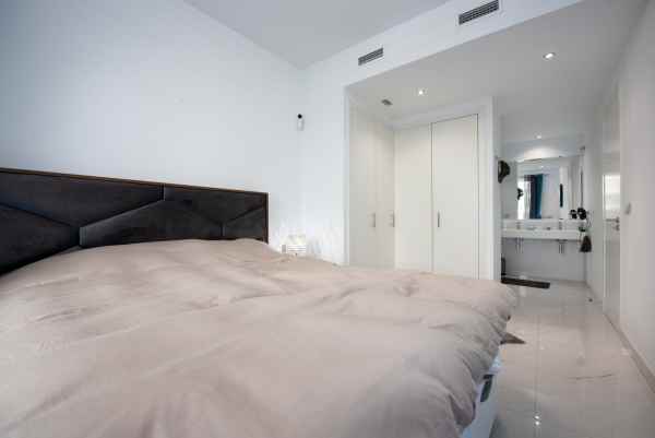 The property has two bedrooms, both with fitted wardrobes. The principal bedroom has an ensuite bathroom and direct access to the spacious private terrace.