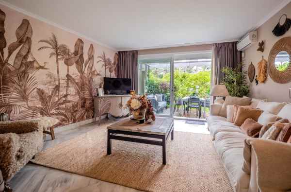 We are pleased to offer this ground Floor apartment in an upmarket development beach side in Elviria. The apartment has been Interior Designed and is tastefully furnished, and a small private garden allows direct access to the stunning tropical gardens and pools, one being heated for the cooler months of the year. The apartment has a large lounge and access to the terrace and garden, fully fitted kitchen guest cloakroom and large master bedroom with walk in wardrobe area and main bathroom. Also included is underground parking space and storage.