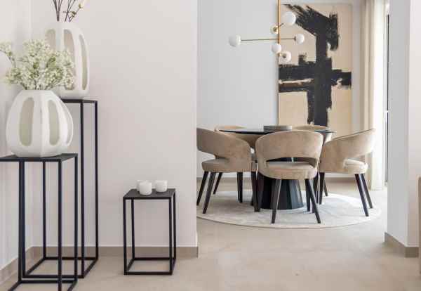 With 145 m² of built space on a well-distributed plot, every corner of this villa has been designed to maximize natural light and open views. Upon entering, an elegant double-height hall sets the tone of the home and connects to the main living areas. The spacious and bright living-dining room opens directly to the south-facing terrace, where you can enjoy the infinity pool surrounded by tropical greenery—an idyllic spot to relax under the sun, host friends, or share unforgettable family moments.