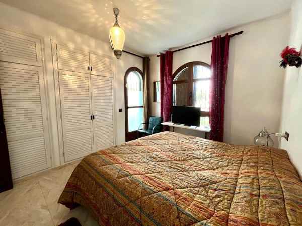Superb Spanish style villa, completely refurbished, on a plot of 900 m2. Hidden from the road with its hedge of fir trees, you access the villa via a gate, or with your car, via the electric gate located a little further. You are in front of the villa with its terrace and shaded patio. On your right, you will find the part of the grounds with the swimming pool and a relaxation area in this part of the garden. To the left of the villa is the garden area, with a carport at the end for parking your vehicle.The garden, with its flowers and pretty plants, offers a number of places to enjoy the sun, a shady area with an arbour, a jacuzzi for 3 people and a barbecue area. Storage space is located below the stairs leading to the entrance porch. There is also a door leading to the lower floor. But back to the living area, from the patio and terrace in front of the villa, you reach the large living-dining room with open fire. To the left of the living room is the fitted kitchen with its laundry area. The living room opens onto a new terrace with barbecue area and superb views of the Villamartin golf course just opposite. From this terrace, you arrive at the solarium with solar panels and 360-degree views to great effect.On the lower level is the first double bedroom with built-in wardrobes. The pellet stove is also located on this level. A second double bedroom with views over the pool, built in wardrobes and ceiling fan. A very large bathroom with double sink, bath and toilet area, the third bedroom with built in wardrobes has its own private terrace. Air-conditioning units are installed in all 3 bedrooms and in the living room. The fourth bedroom is currently used as a dábarras and has access to the garden area of the villa.Close to all amenities, bars and restaurants, as well as several shopping centres (La Zenia Boulevard, La Fuente, Los Dolses and La Rioja), the villa also has a tourist licence. This makes it the ideal place for nature lovers, golf enthusiasts and large families ..... One visit and you'll be under the spell of this villa .... Don't hesitate to contact us for more information or to book a visit. Of course, if you can't come in person, we can organise virtual visits.COMMUNITYComposed exclusively of ouvilla duplex style houses, it offers, in addition to its excellent location, a swimming pool with jacuzzi area for residents and their guests.ZONELocated in an exclusive residential area in the south of the Costa Blanca. The urbanisation has pleasant squares, shopping centres and restaurants where you can enjoy a wide variety of dishes. The nearest hospital is the University Hospital of Torrevieja (4 km), and just a few minutes away is the Quirónsalud Torrevieja Hospital. There are also airports such as Murcia Region International Airport (35 km) and Alicante International Airport (47 km).Property taxes ( IBI - SUMA ) : 50 € / MonthCommon expenses : 100 € / MonthDistance to golf courses : 250 meters.Distance from the beach : 4 kilometers