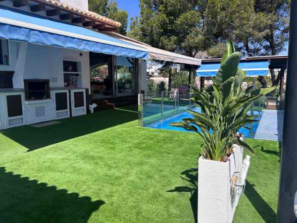 Lomas de Don Juan – Stunning Villa with Views of the Natural Park. . We present this beautiful detached villa located in Lomas de Don Juan, directly facing a protected natural area, offering privacy and unbeatable views. The property sits on a 225 m² plot surrounded by trees, featuring a fantastic private pool, barbecue area, and a traditional wood-fired oven — a true outdoor oasis.. . The house offers 170 m² of built space, distributed over 3 spacious bedrooms and 3 full bathrooms. The bright and airy living-dining room is enhanced by large windows and is seamlessly connected to a modern open-plan kitchen. Upstairs, the solarium with jacuzzi is the perfect spot to relax and enjoy open views of the landscape.. . The basement has been fully insulated and soundproofed, making it an ideal space for a home cinema or game room. The property also includes a private parking space, gas central heating, air conditioning, and is sold semi-furnished.. . A unique home that perfectly blends nature, comfort, and Mediterranean style.