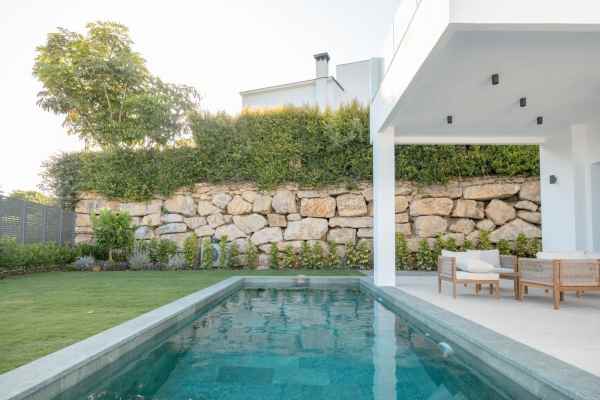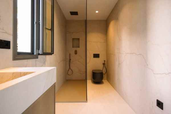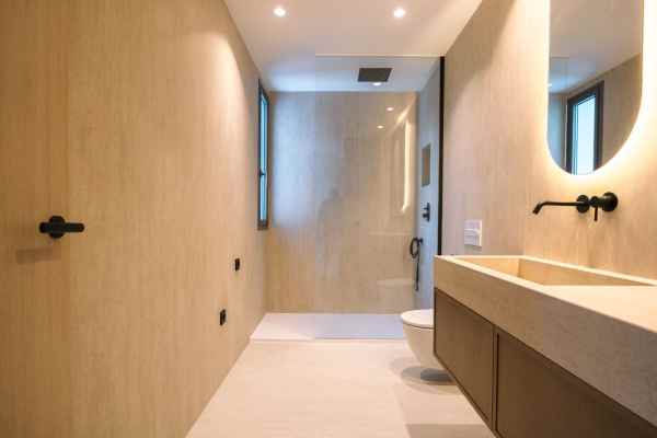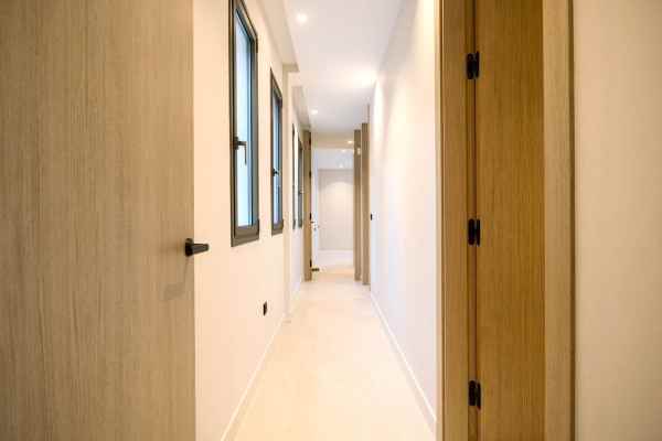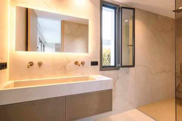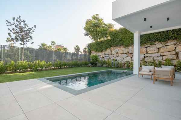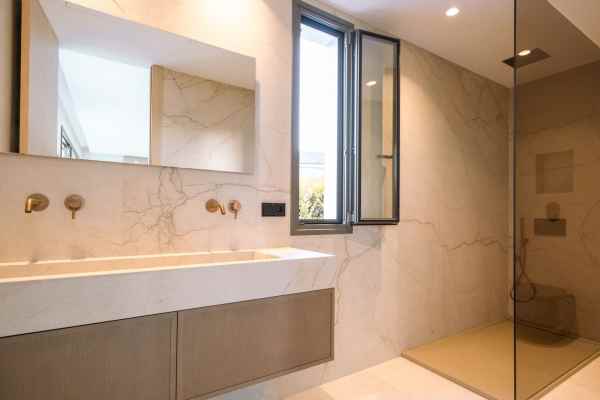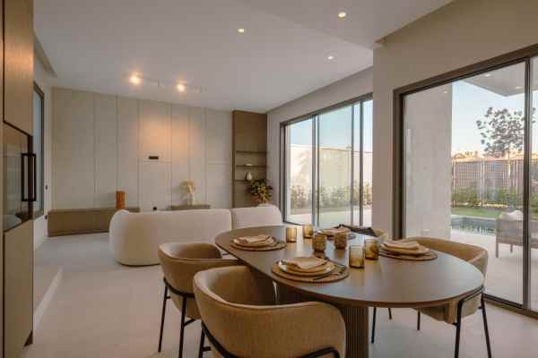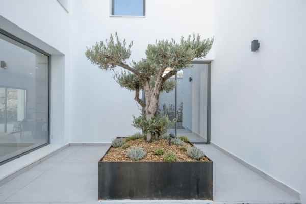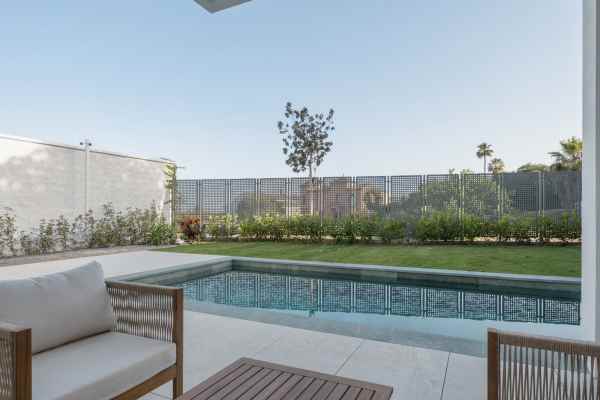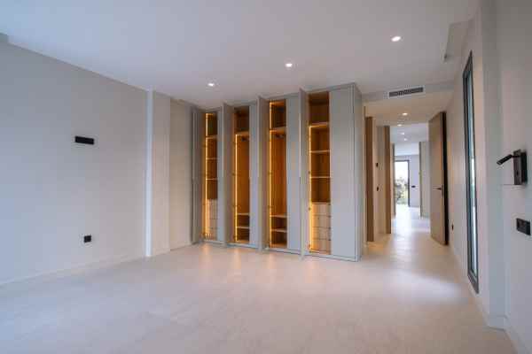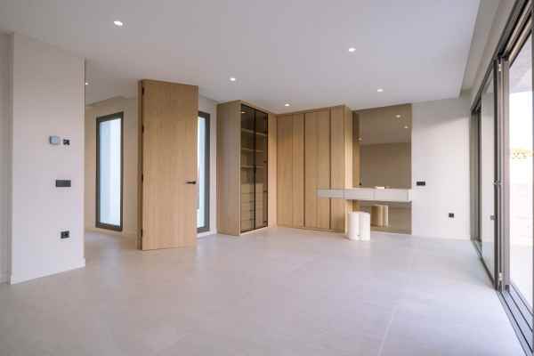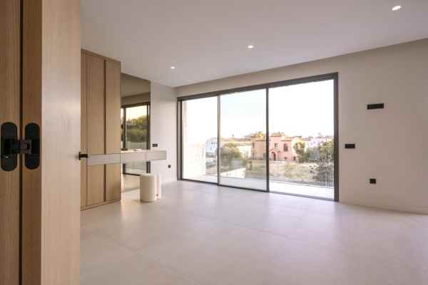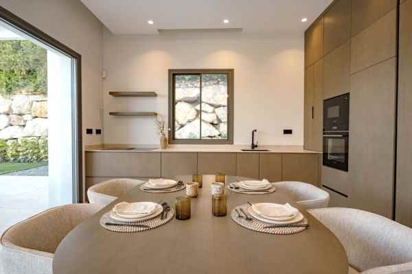 This Brand new exclusive contemporary villa on Arena Beach offers a modern, light-filled living experience. The spacious layout includes four bedrooms, each featuring state-of-the-art en suite bathrooms and handmade wardrobes with integrated lighting. The fantastic living area boasts large windows and direct access to the pool and beautiful private garden, while the high-quality American kitchen is equipped with Siemens appliances. Practical luxury is ensured by separately adjustable underfloor heating and air conditioning throughout the house. Adding to its appeal, the basement presents versatile rooms perfect for a games room, spa, or home cinema.
