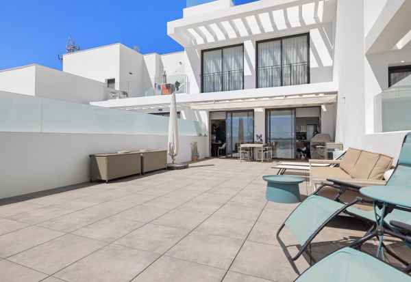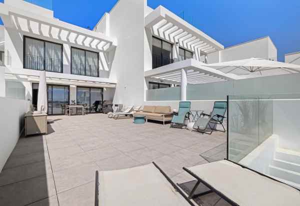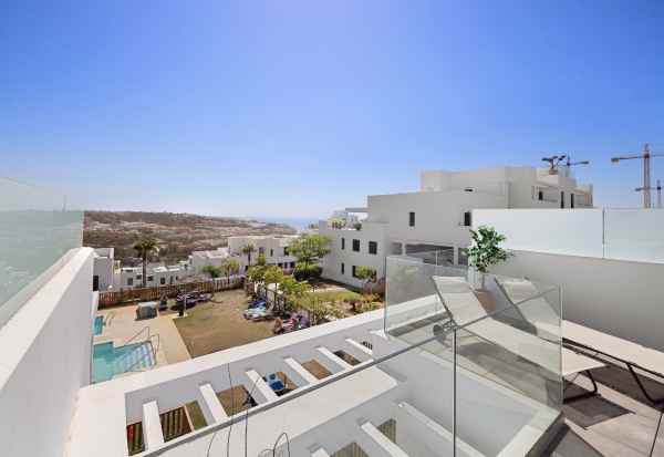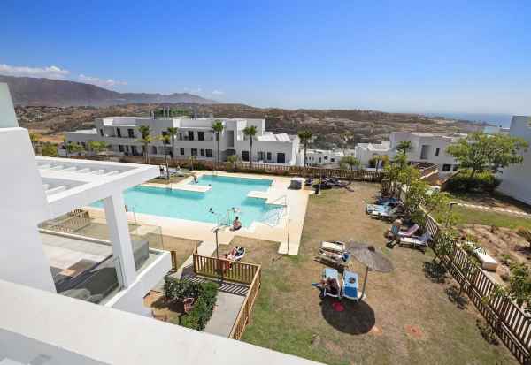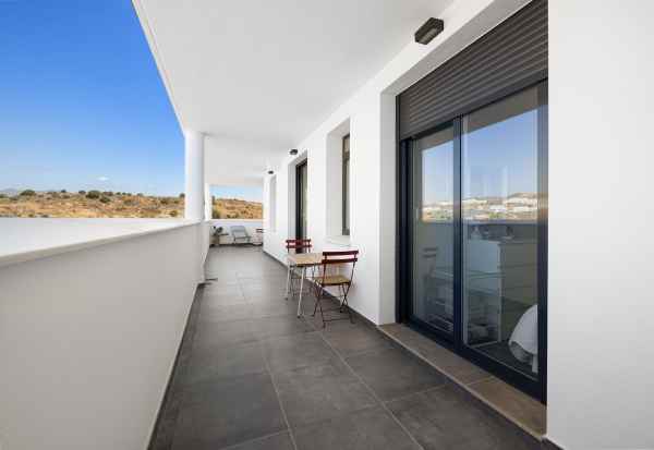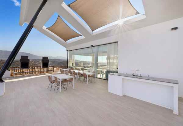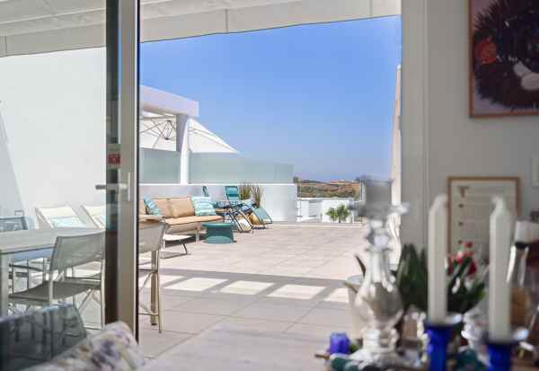 Large main terrace with beautiful views over the pool, sea, and mountains – even as far as Sierra Nevada on clear days.