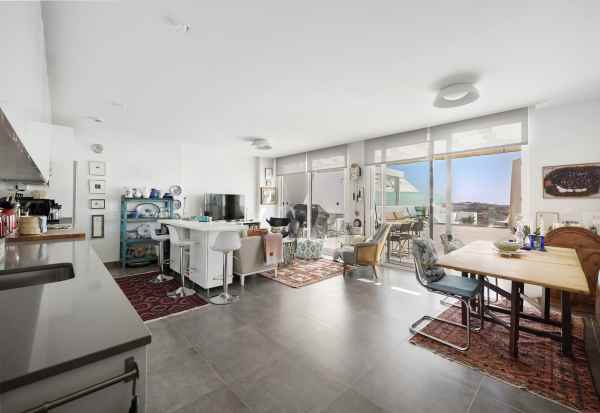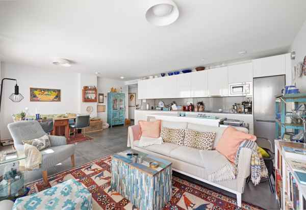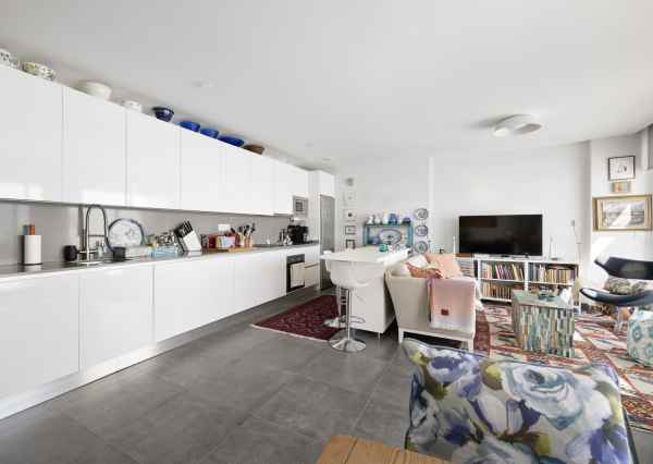 Spacious and bright lounge/dining room with fully fitted kitchen.