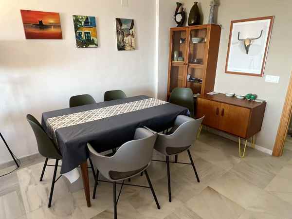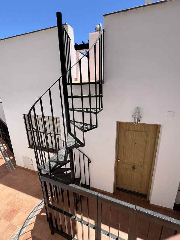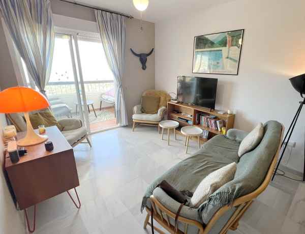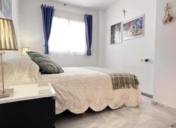 Entrance hall. Lounge-dining room with A/C h+c, ceiling fan and sliding doors to enclosed sunny terrace with folding glass curtains. Shower room. Master bedroom with wardrobes and sliding doors to the enclosed terrace. This sunny enclosed terrace could be a reading room or study if needed. Double glazing. Roller blinds. Marble floors. Ceiling fans. Guest bedroom also has fitted wardrobes. Full bathroom. Fully fitted kitchen with glass-ceramic hob, fridge-freezer, oven, extractor fan and granite counter-top. Small patio has spiral stairs that lead up to huge ROOF-TOP TERRACE with those outstanding PANORAMIC views to the whole coast. There are new storage units, an outdoor shower, and space for BBQ and dining “al fresco” – a great place to chill out. Communal swimming pool, well-maintained gardens and a designated parking space. All within a peaceful gated complex only a short walk from Mijas center. Walking distance to all amenities! Near bus stop. VIEWINGS ARE HIGHLY RECOMMENED!!