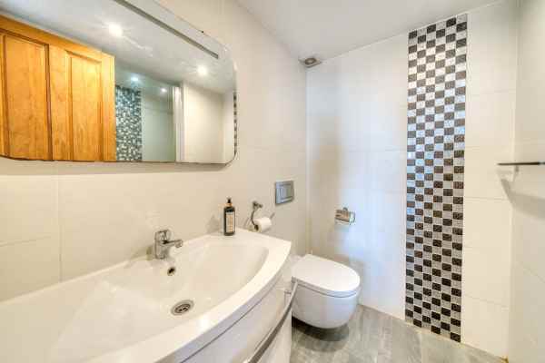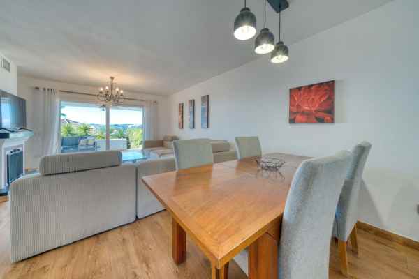 Immaculately presented and enjoying a privileged southwest orientation, this elegant two-bedroom townhouse offers stunning views across La Duquesa Golf Course to the Mediterranean Sea. Set within a peaceful and sought-after community close to the Marina and surrounding golf course, the property combines comfort, space, and convenience, yet just a 15-minute walk from the beach and the vibrant marina of Puerto de la Duquesa with its bars and restaurants. The ground floor features a large fully fitted kitchen and breakfast room with adjoining utility and guest WC. A spacious lounge and dining area opens onto a generous covered terrace, perfect for alfresco dining while enjoying panoramic views. Steps lead down to a private garden, designed for year-round sun and relaxation. Upstairs, there are two double bedrooms with fitted wardrobes and two modern bathrooms, including a master en-suite with stunning views - the master suite has a terrace which has been made part of the bedroom, but could very easily be converted back into a terrace. Additional benefits include private off-road parking, ample storage space with a downstairs cupboard and loft storage (which could also be converted into a 3rd bedroom), and access to beautifully maintained communal gardens with two pools, including a children’s pool.