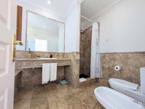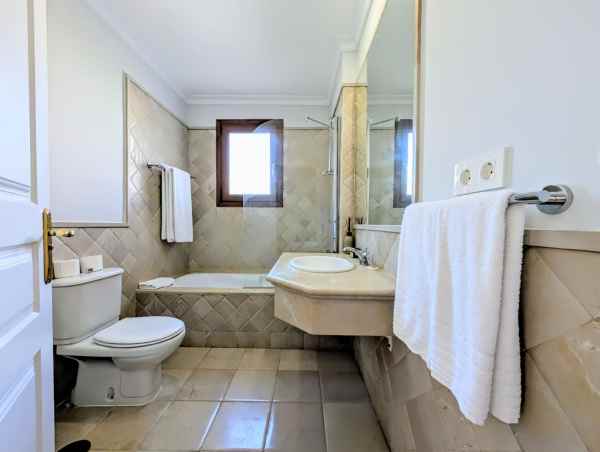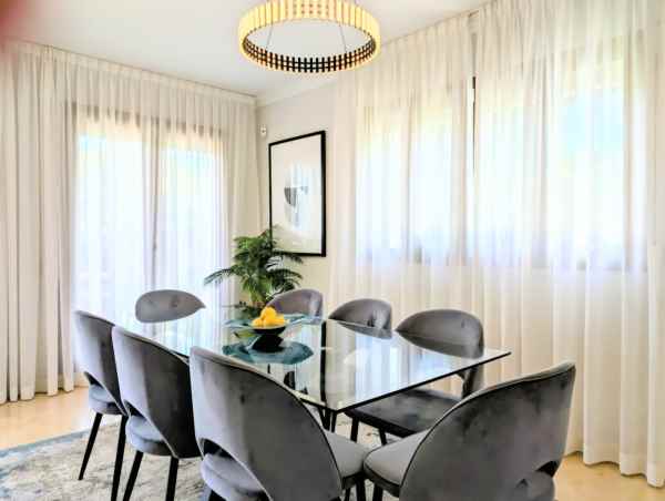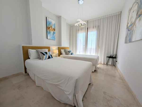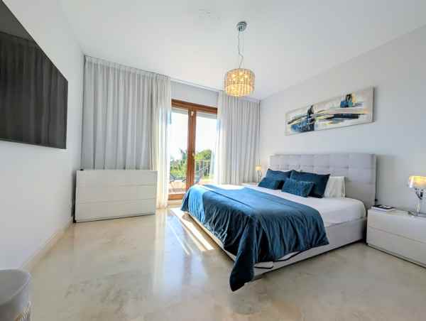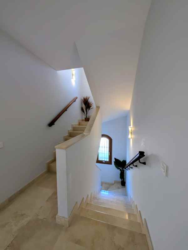 Up the stairs there is a distribution hall leading to great size master bedroom with ensuite bathroom and two good size guest bedrooms sharing family bathroom. All the bedrooms have access to terraces, come with fitted wardrobes and independent thermostats for A/C.