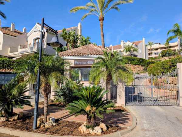 NEW! Stunning semi-detached house in gated community Paraíso Hills. This spacious house is built over three levels with ample living areas and large terraces including amazing rooftop terrace offering panoramic views.