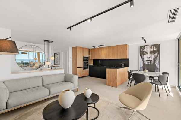 Step inside to discover a bright and airy open-concept living space, seamlessly connecting the lounge, dining area, and modern kitchen—perfect for entertaining or relaxed everyday living. The sleek, fully equipped kitchen features high-end appliances, clean lines, and ample storage.