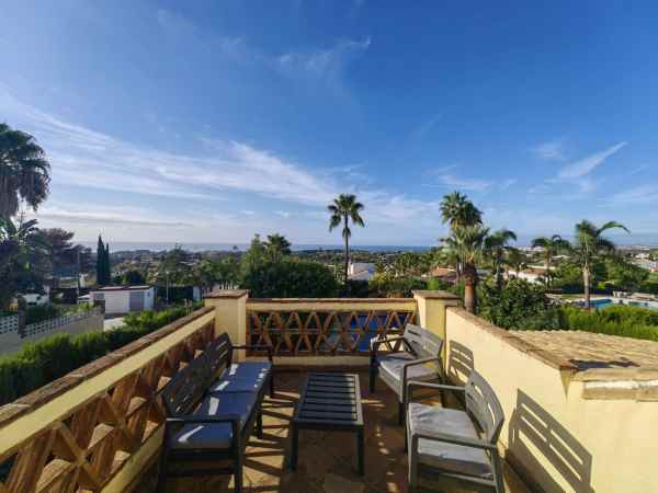 Perched at the very top of Puerto Romano, this beautiful Andalusian-style family villa offers some of the most breathtaking panoramic views on the Costa del Sol. From sunrise to sunset, enjoy sweeping vistas that stretch from La Concha mountain to the east, across the Mediterranean Sea, Gibraltar, and the Atlas Mountains of Morocco to the west.