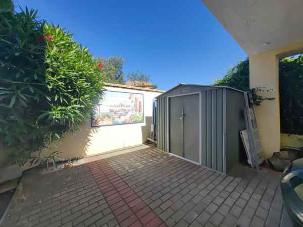 The villa sits on a generous plot of almost 1,000 m², surrounded by landscaped gardens that ensure privacy, tranquility, and a true sense of escape. A large private swimming pool takes center stage, while an automated gate opens to the driveway with both open and covered parking.