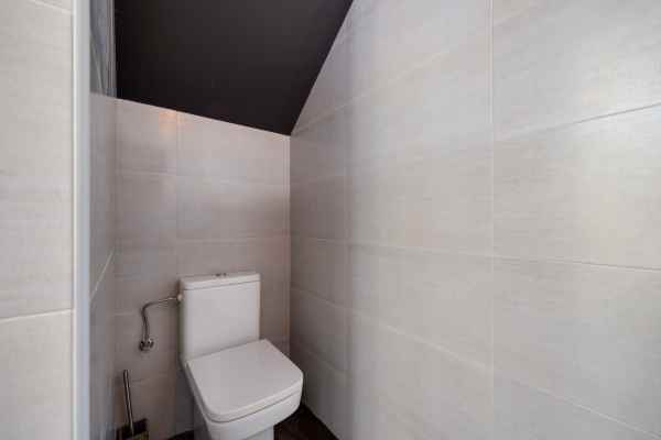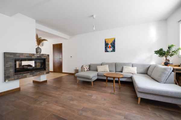 All windows are PVC with double glazing and inert gas filling, and south-facing windows have a reflective coating for privacy and heat reduction. The house features water-based heating on both floors, including bathrooms, with a pellet boiler installed and an easy option to switch to electric if needed. All walls are insulated with polyurethane foam, providing excellent thermal and sound insulation, and the basement room is soundproofed.