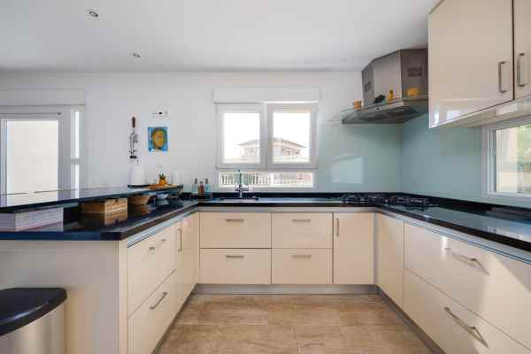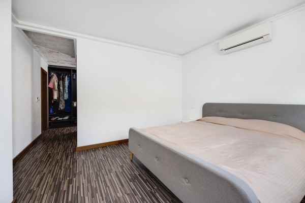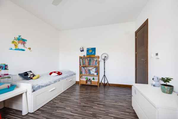 A luxury villa with a large plot of 1,211 m². On the ground floor, there are 3 double bedrooms, one of which is a suite with a walk-in closet and en-suite bathroom, a living room with a fireplace, and an open-plan kitchen with a dining area. The second floor features an office overlooking the green area of the plot and a huge terrace with an open 270-degree view of the lake. The semi-basement is divided into three rooms: a laundry room, a games room, and a hairdresser’s office with a bathroom. Solar panels for water heating are installed on the terrace. There is also a storage room with a boiler room on the plot, a private swimming pool (5x12 m), and parking space for about three cars at the entrance.