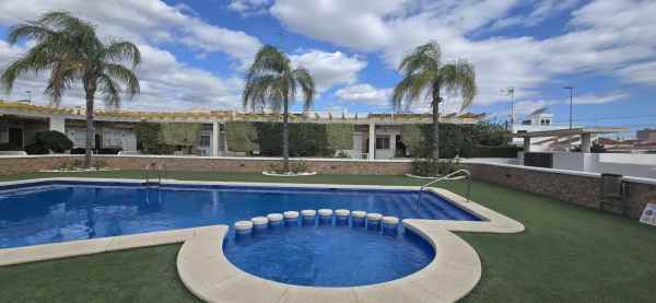 This one-floor corner bungalow is located in an enclosed urbanization with only 20 properties. It overlooks the community pool and offers extra space with a large terrace, a barbecue area, and a private parking place on the plot.