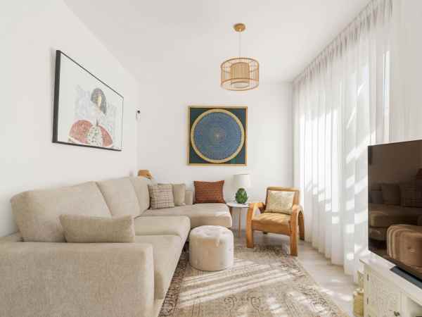 This modern apartment with contemporary interior is situated in a recently constructed gated development with large communal pool, located at walking distance from the the quaint town of Cancelada.