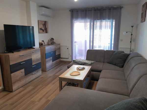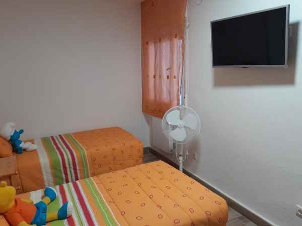 Both bedrooms have a peaceful location and nice light. The master bedroom is furnished with a double bed, while the other has two single beds - ideal for children, guests or a home office. The bathroom is fully tiled and equipped with a shower, toilet and sink.