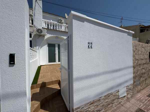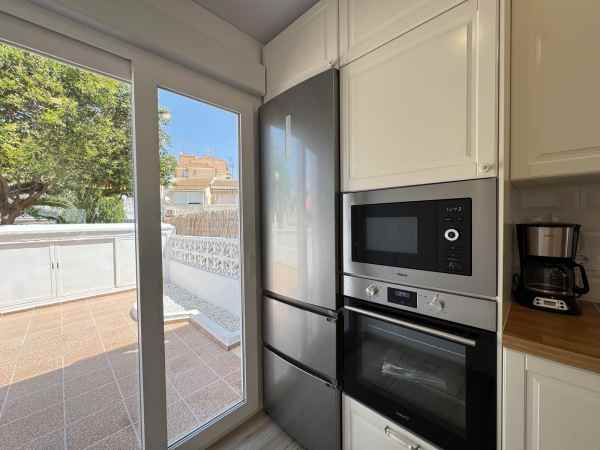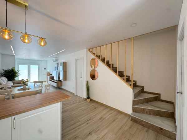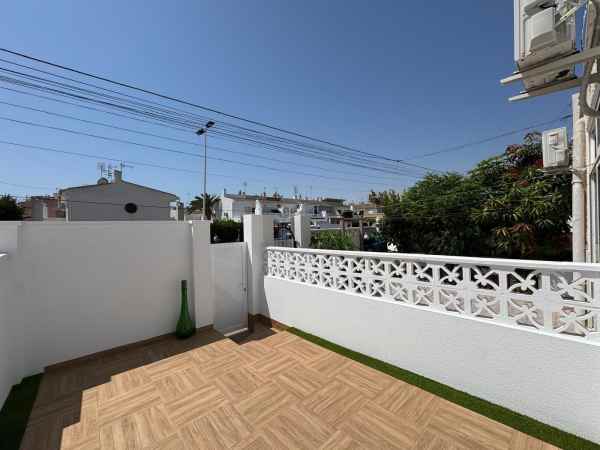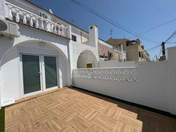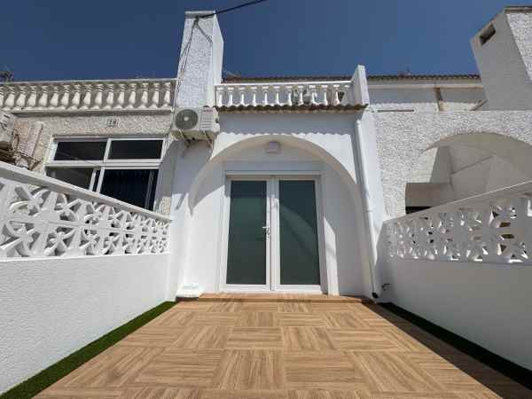 Modern and cozy townhouse for sale, ready to move in!This spacious townhouse with three bedrooms and two bathrooms is an excellent option for both permanent residence and family vacations. Each bedroom has air conditioning, ensuring a pleasant climate all year round. The living room also has its own air conditioning.DistributionOn the ground floor, we find a very spacious living-dining room, integrated with the kitchen in open space style, providing spaciousness and brightness. The property has undergone a complete renovation, with a full renewal of the electrical and plumbing installations, ensuring maximum safety and durability.Condition and equipmentIt is sold fully furnished and equipped with all necessary appliances — everything seen in the photos is included in the price.Outdoor spaces• Main terrace of 20 m² — ideal for enjoying morning coffee or relaxing at sunset.• Back terrace (30 m²) with access to the patio — perfect for barbecues, outdoor meals, or as a play area for children.On the upper floor:• Terrace of 10 m² — perfect for sunbathing or relaxing privately.• Terrace of 15 m² — with views of the park and community pool.Finishes and extras• Laminated flooring on the upper floor and wood-effect ceramic tiles on the ground floor.• Tensioned ceilings with modern lighting.• Electric blinds.• Decorative elements, high-quality fittings on interior doors.• Magnetic locking system on doors.InfrastructureLocated in an urbanization with a community pool and green areas, ideal for families. Within walking distance of shops, cafes, schools, public transport, and all necessary services.???? Usable area: 75 m²???? Pool: community???? Excellent location: quiet area but close to the center and the beaches