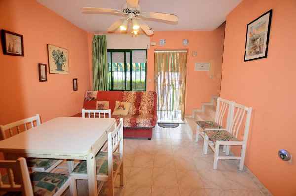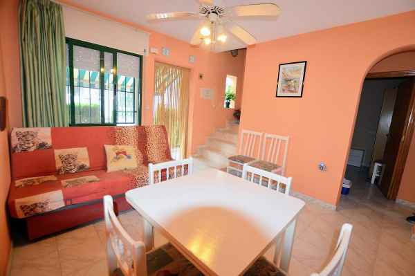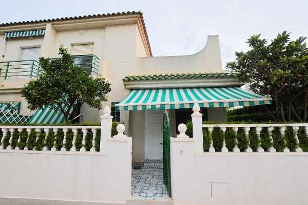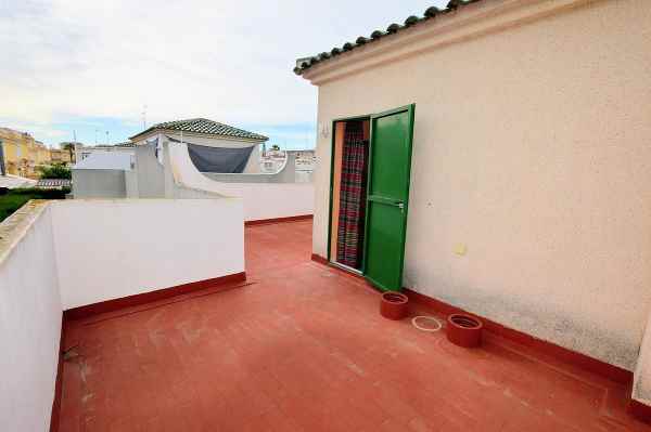 We present to you this Semi Detached Villa located within a gated community in Punta Prima. The property consists of 3 bedrooms, 1 bathroom, living/dining area and a fully fitted kitchen. The property benefits from terraced areas, roof solarium with views of the gardens, ceiling fans and offers a large communal swimming pool.